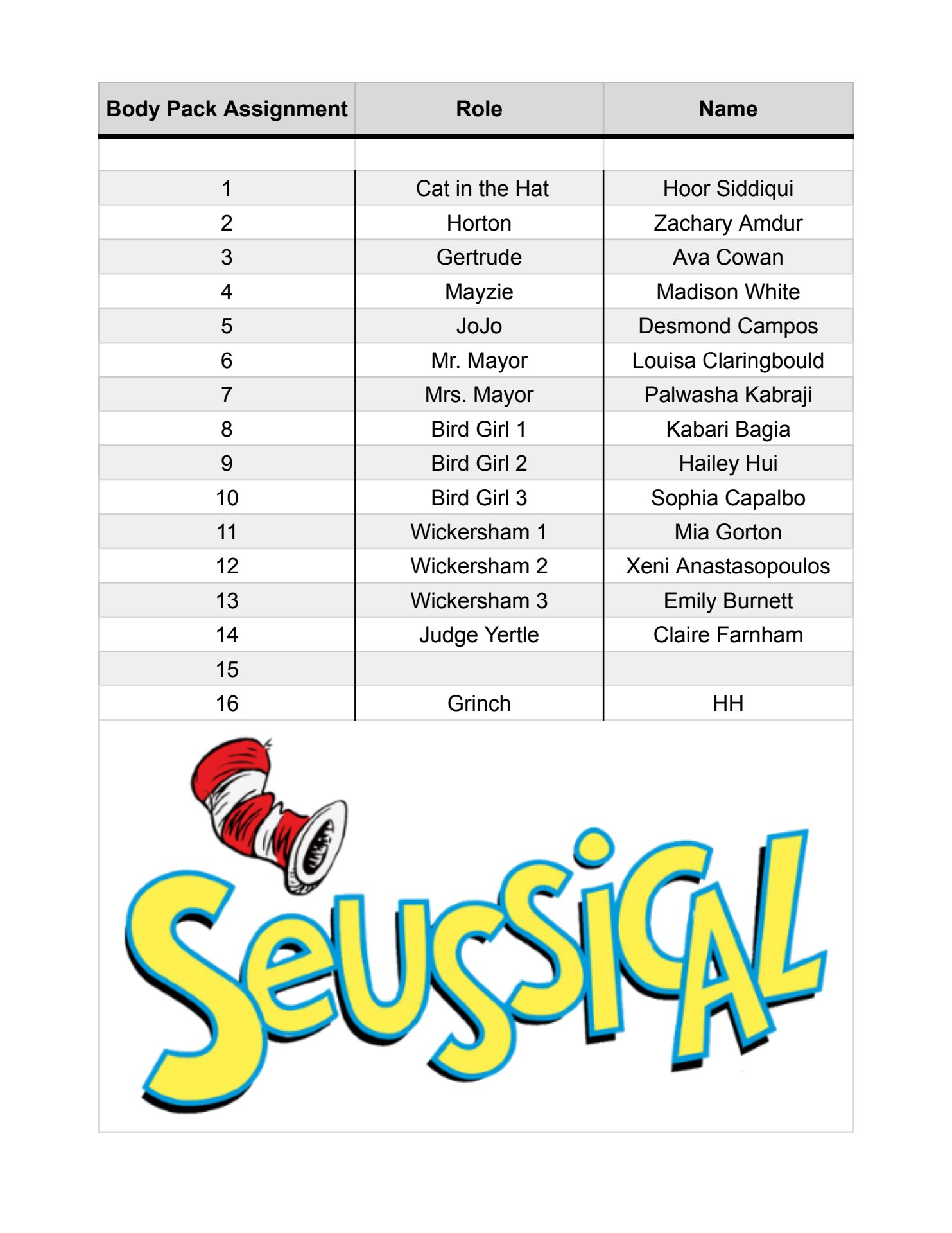 Seussical, directed by Renee Hawthorne, produced by Kristen Tripp Kelley closed at the Flickinger Performing Arts Center on April 12th, 2025.